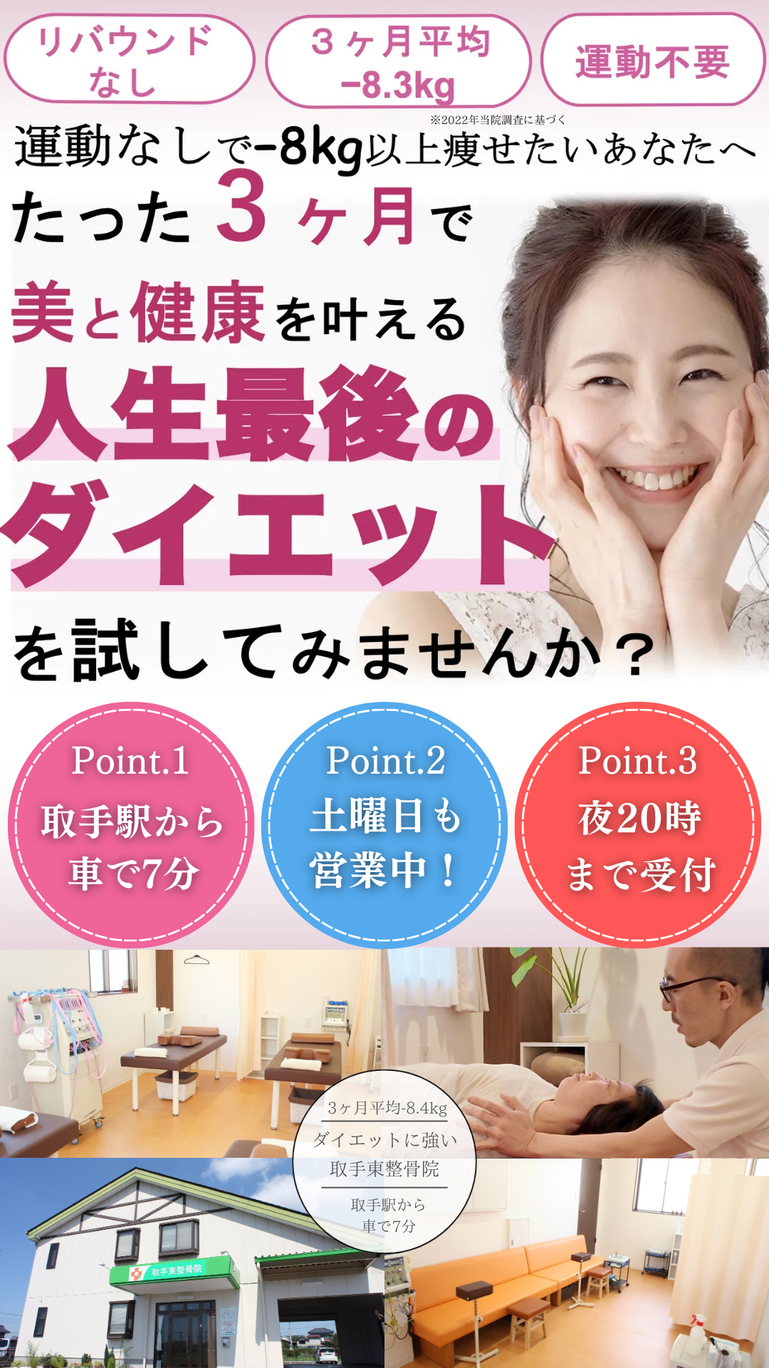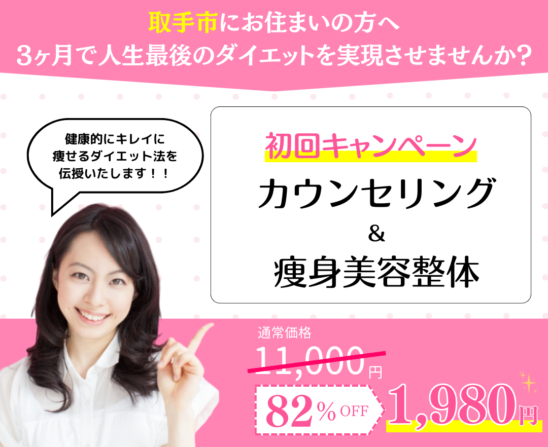 取手東整骨院では、あなたのダイエットを最初から最後まで責任を持って真摯に向き合い、結果にこだわっていきます。